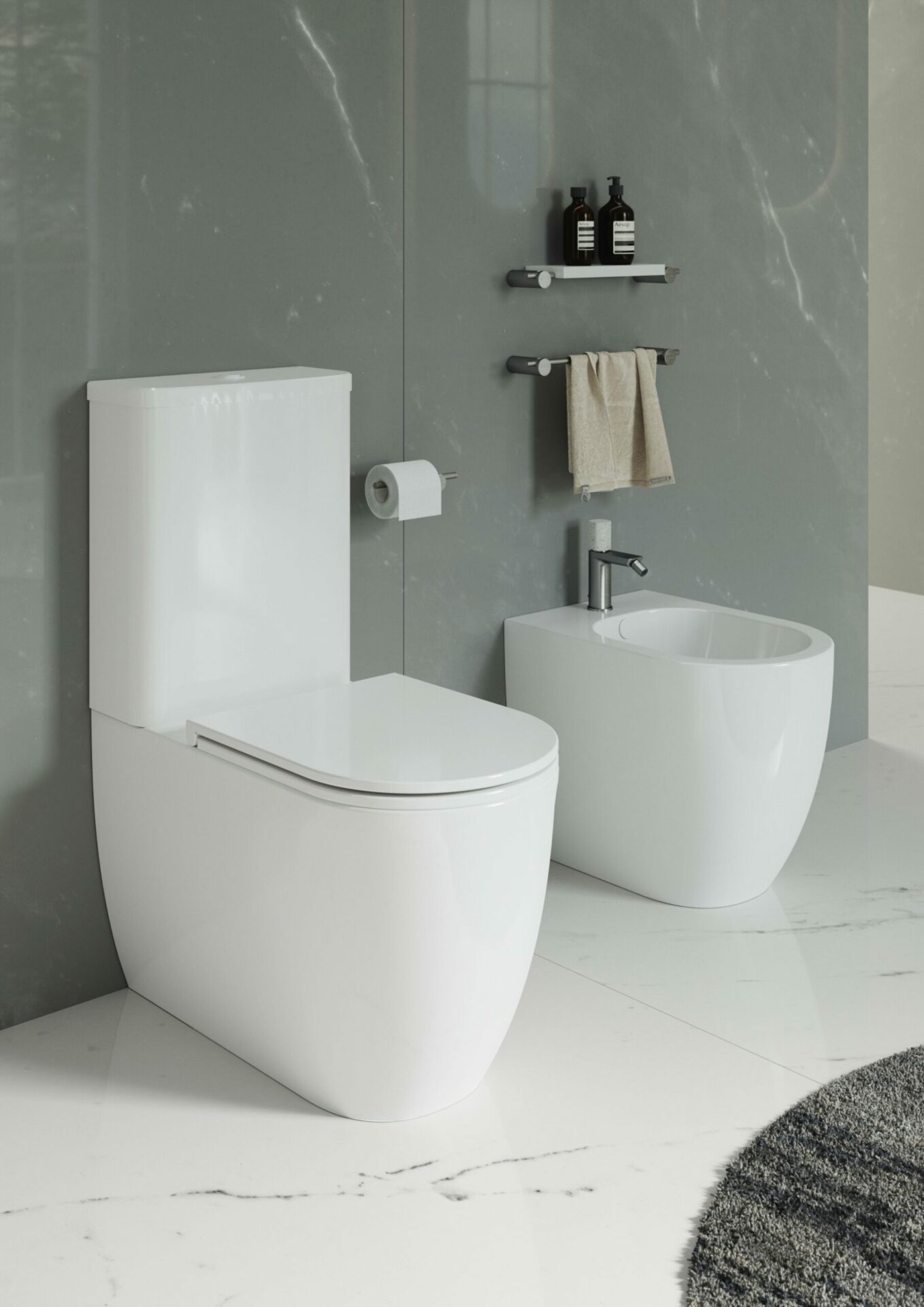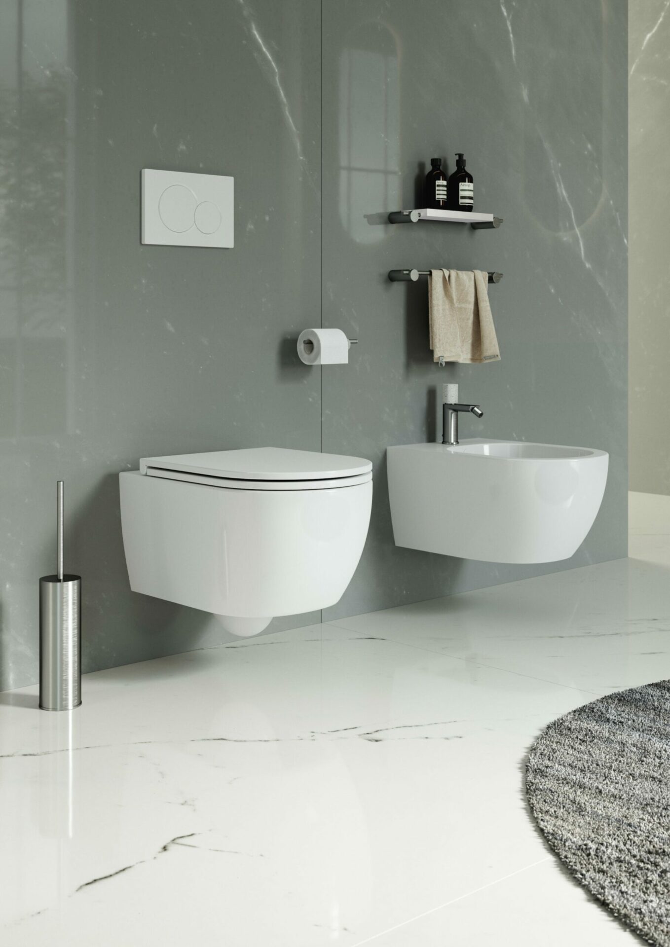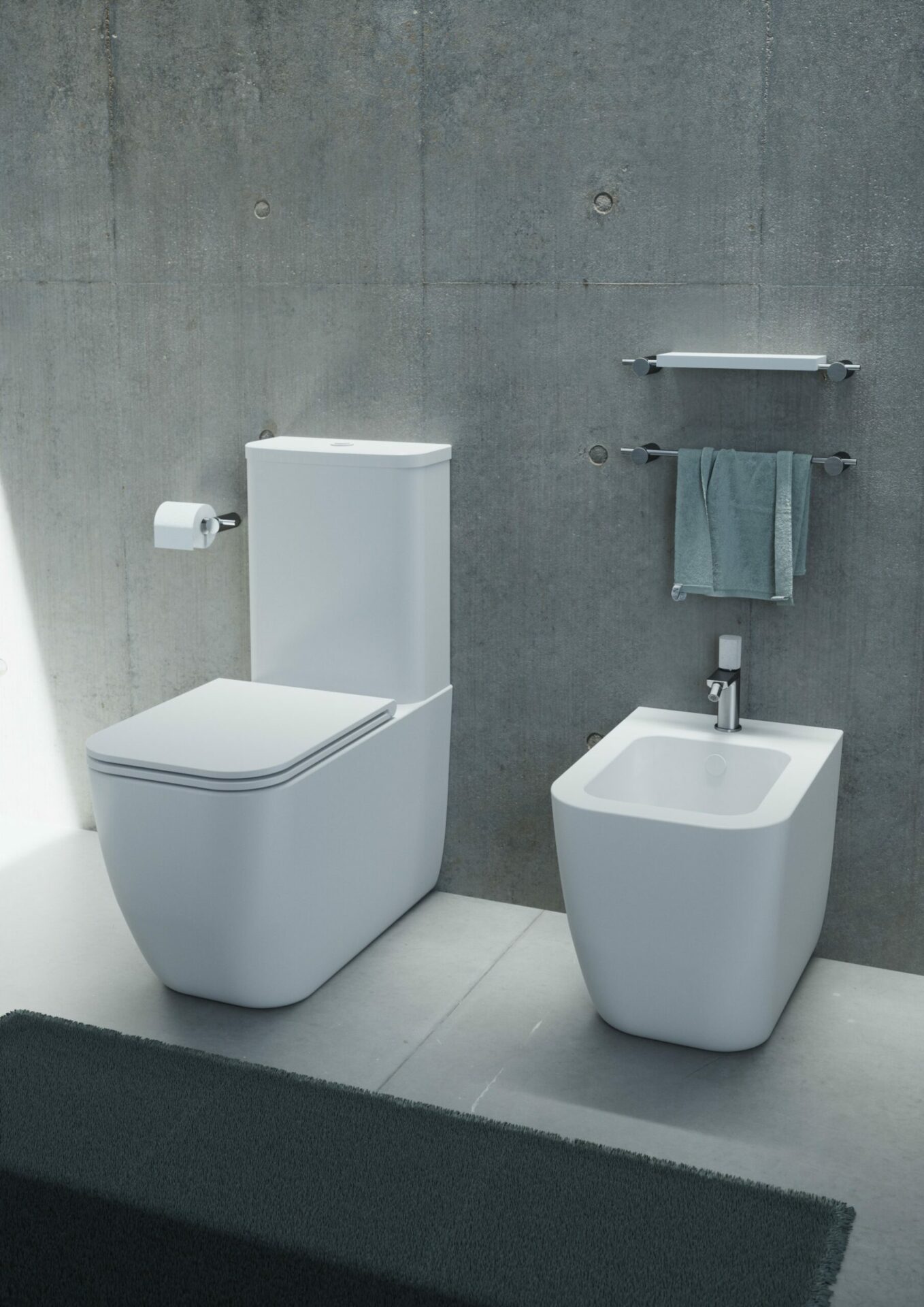Our collection includes toilets and washbasins with modern lines and refined finishes, available in floor-standing or wall-hung options. Designed for durability and ease of maintenance, they offer a timeless result for any bathroom, whether private or commercial.